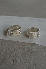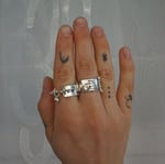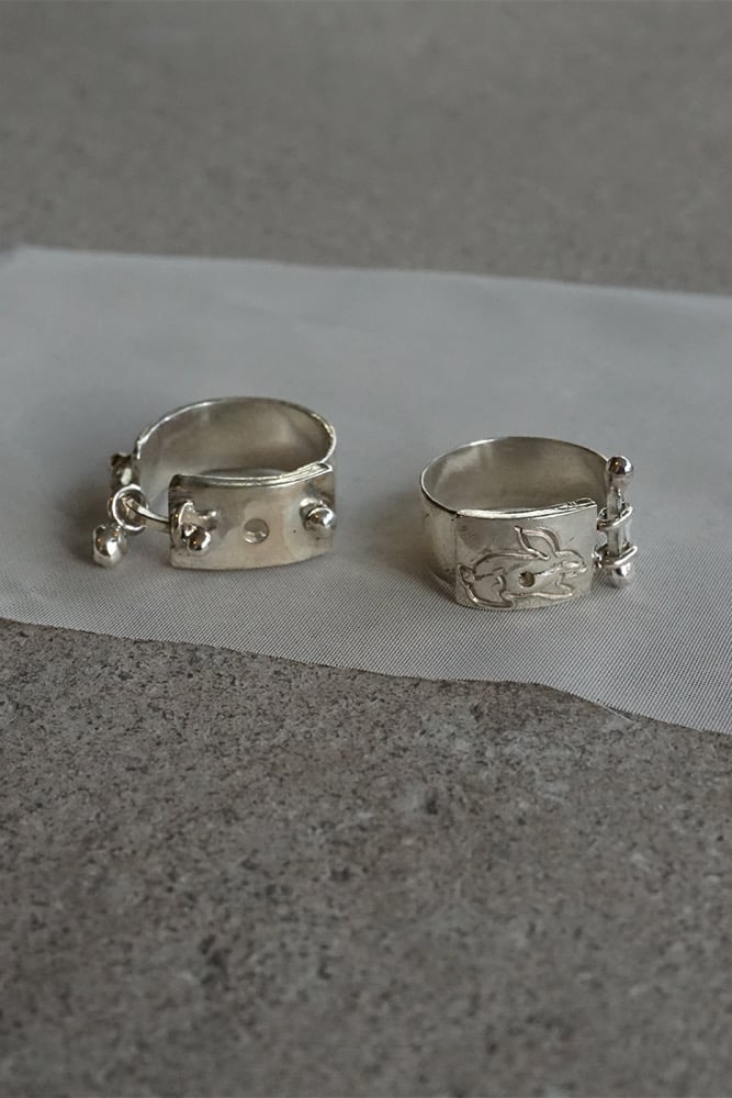 Silver ring with rabbit carving and fidget charms.