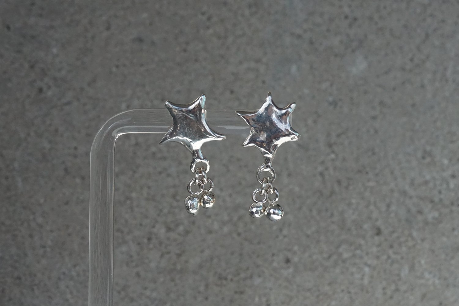 Silver dangle earrings with asymmeric handsculpted stars